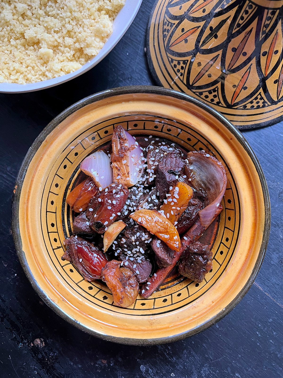 If you don’t have a tagine, you can use a Dutch oven or another lidded pot instead, so long as it has a tight lid.