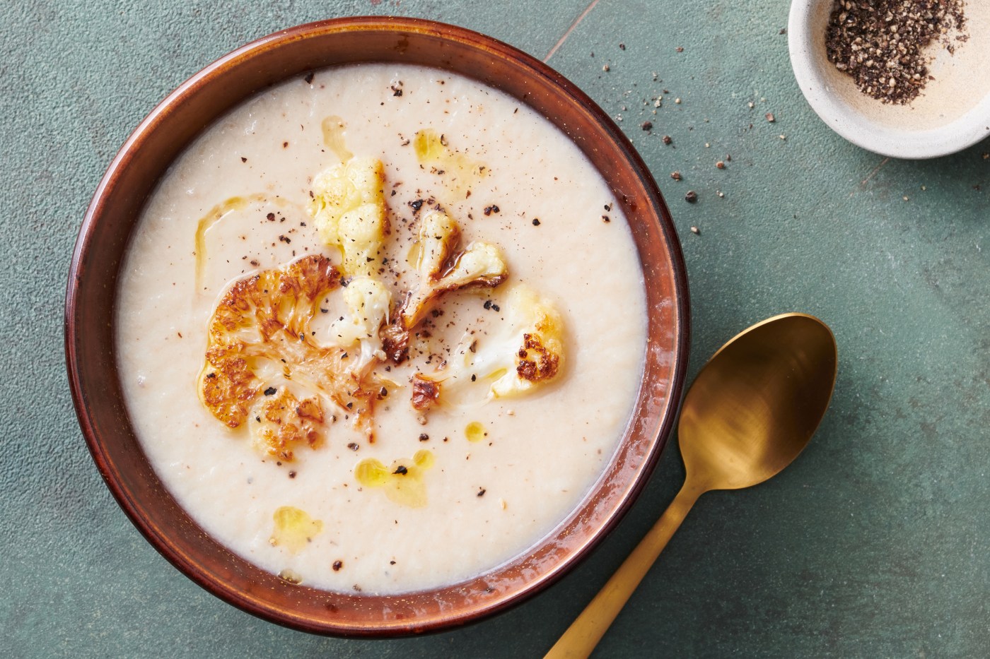 4. Serve the soup topped with the reserved roasted cauliflower, a drizzle of olive oil and more black pepper.