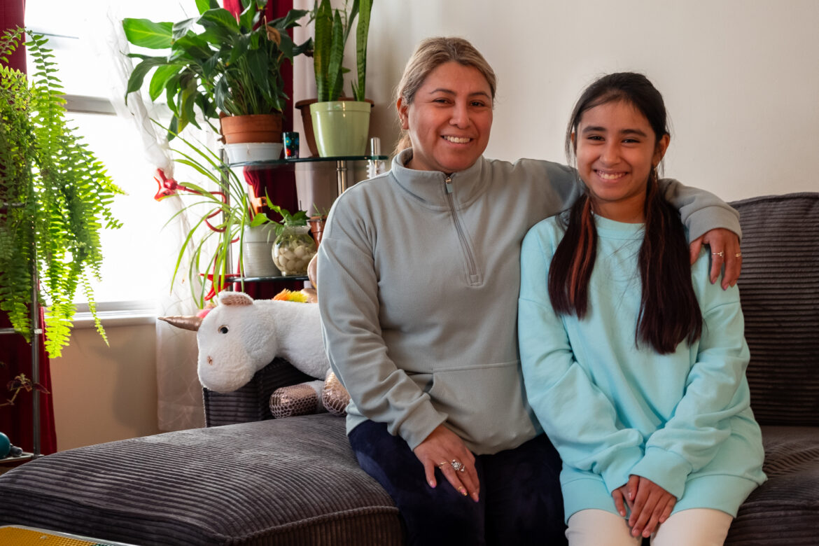 Ciria Santiago with her daughter in their Queens apartment on March 8, 2024. Santiago’s family would be among those aided by the proposed Working Families Tax Credit. “I would use that money to save for my daughter’s college,” said Santiago.