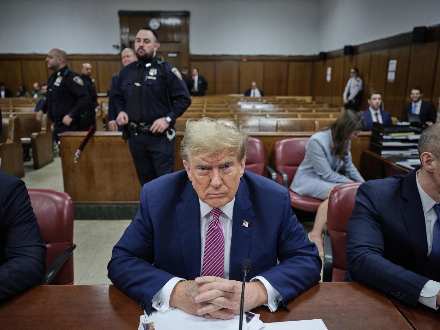Donald Trump is charged with 34 felony counts of falsifying business records and could face four years in prison if convicted, though it’s not clear if the judge would seek to put him behind bars. A conviction would not preclude Trump from becoming president again, but because it is a state case, he would not be able to attempt to pardon himself if found guilty. He has repeatedly denied any wrongdoing.