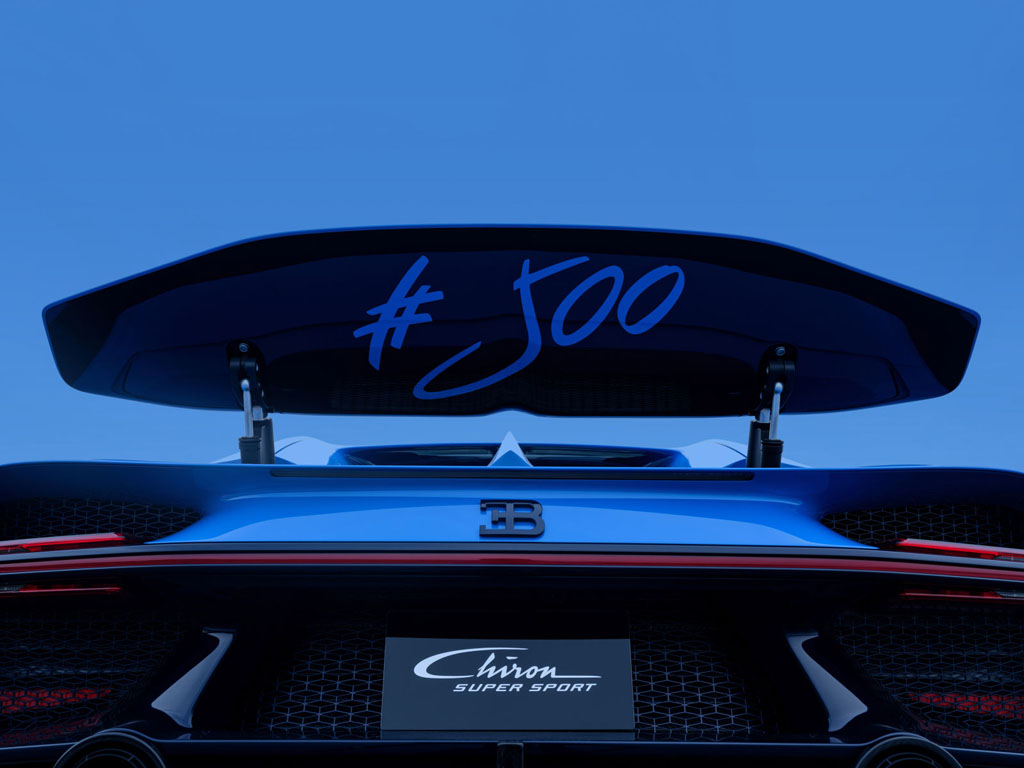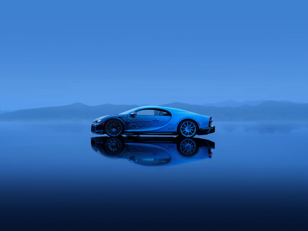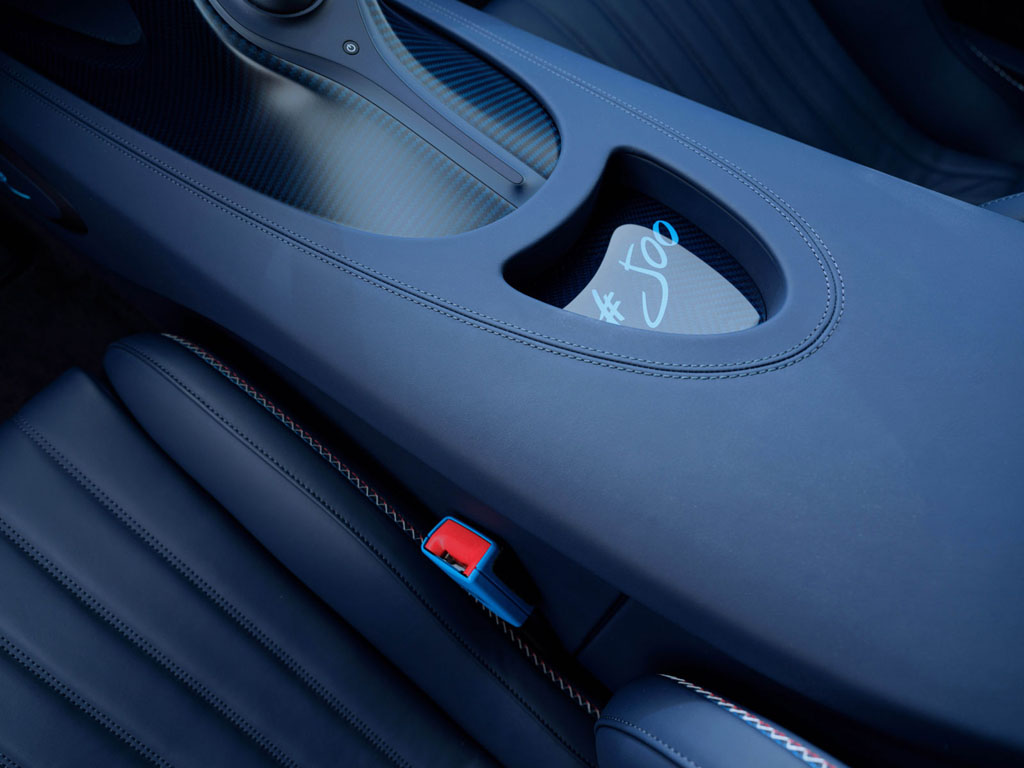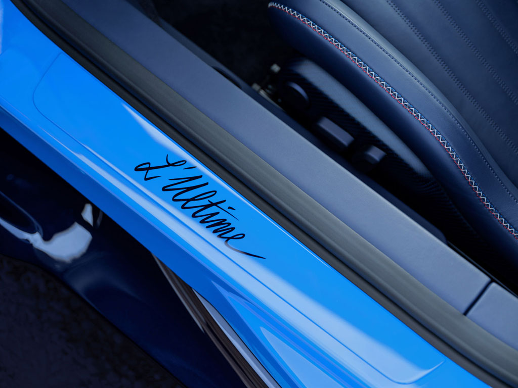 L’Ultime is based on the Super Sport variant and pays homage to the Chiron that debuted at the 2016 Geneva Motor Show. The car’s distinctive livery transitions from French Racing Blue to Atlantic Blue, a design inspired by the original show model. Bugatti’s attention to detail is evident with hand-written references to significant locations and events that marked the Chiron’s history over the past eight years.
