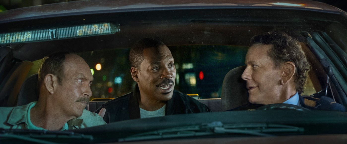 Within the first 10 minutes, the needle drops include not only “The Heat Is On” but also Bob Seger’s “Take Down” (from the second movie) just to situate us firmly within the BHC sonic universe. By minute 11, we get a few bars of the familiar electronic instrumental track “Axel F” just to underscore the point. The nostalgia doesn’t stop there. The Pointer Sisters’ “Neutron Dance” accompanies yet another chase and you realize the movie is tapping into every melodic sense memory it has at its disposal. And why not? I’m not complaining. I like this music. But the reprise of it all is a conspicuous and intentional stoking of affection for the original in the hopes that audiences will associate the movie with a better one that came out 40 years ago.