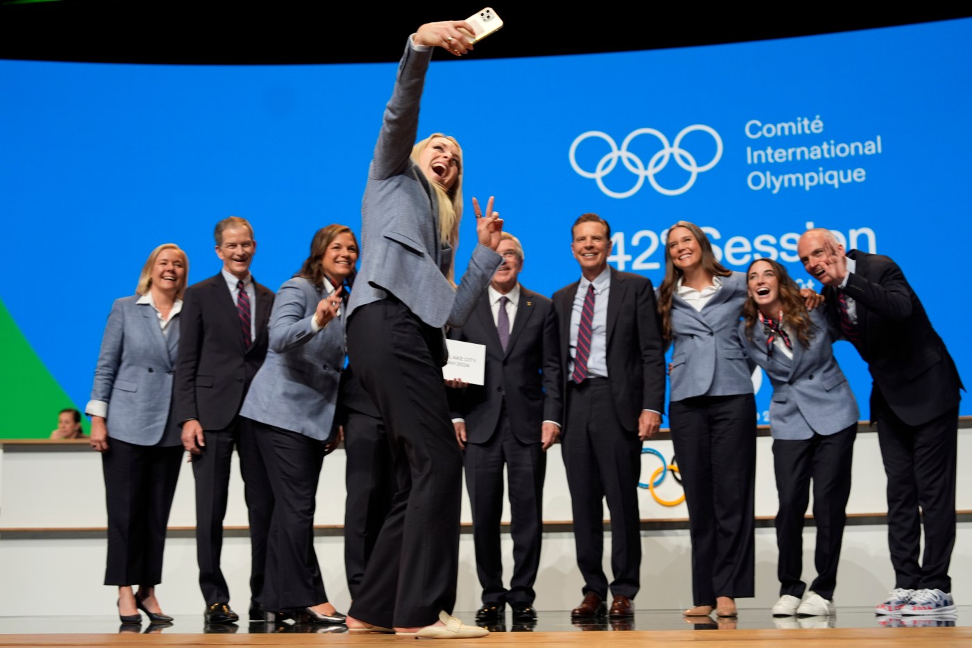 The campaign team presenting the bid on stage to IOC members included the Governor of Utah Spencer Cox, Salt Lake City Mayor Erin Mendenhall and Alpine ski great Lindsey Vonn. Back home, a 3 a.m. public watch party gathered to see a broadcast from Paris.