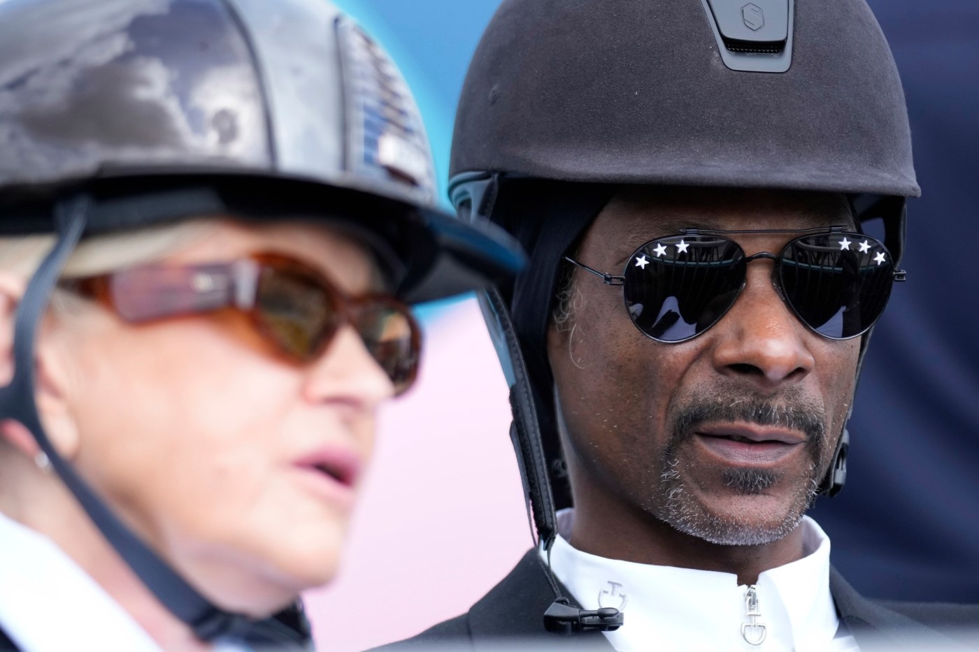 Snoop Dogg attends the men’s team foil quarterfinal match during the 2024 Summer Olympics at the Grand Palais, Sunday, Aug. 4, 2024, in Paris, France. (AP Photo/Lindsey Wasson)