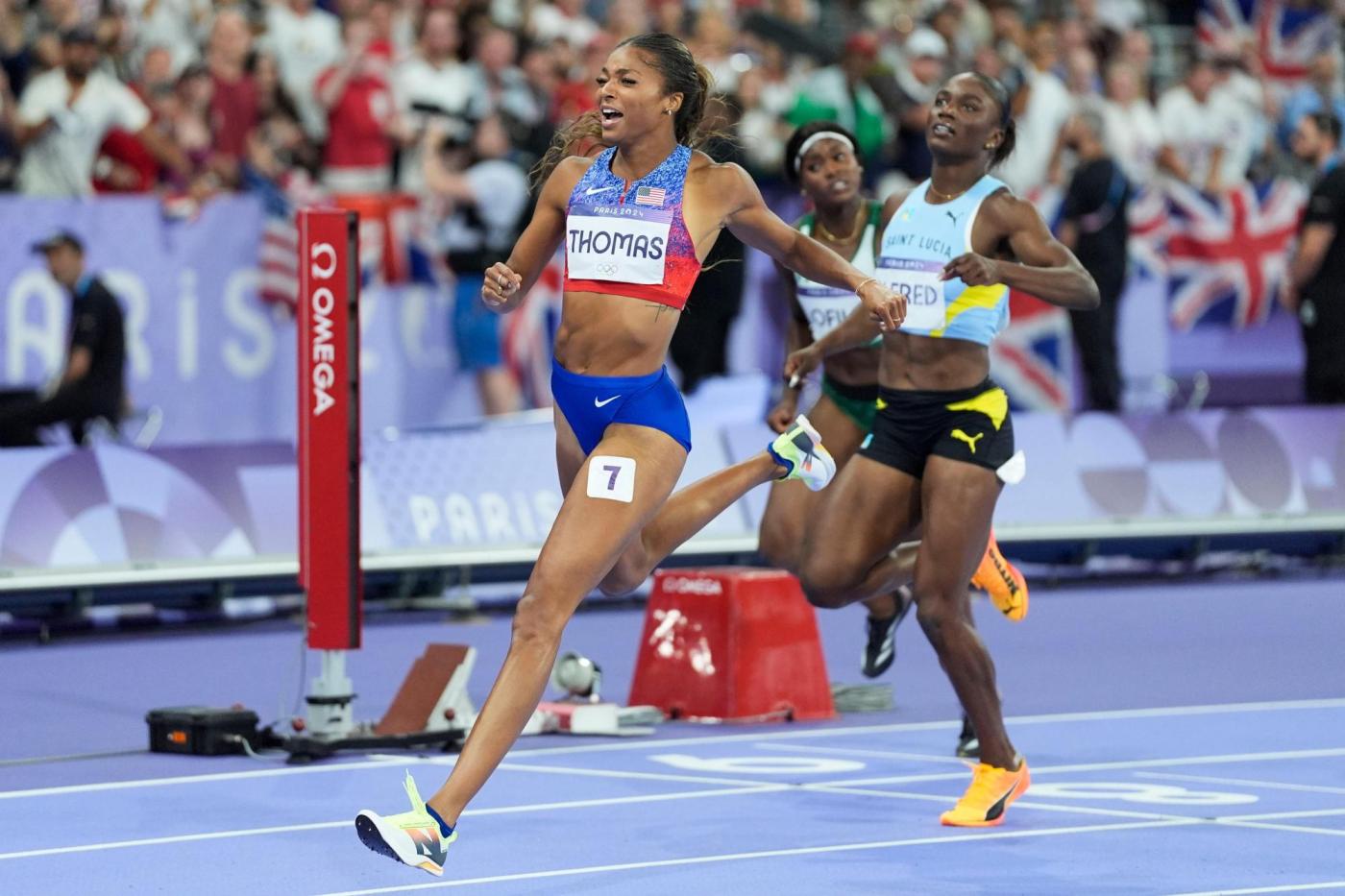SAINT-DENIS, France (AP) — Gabby Thomas sped to the win in the women’s 200 meters at the 2024 Olympics on Tuesday night, finishing in 21.83 seconds to add a gold to the bronze she took home in the event from Tokyo three years ago.