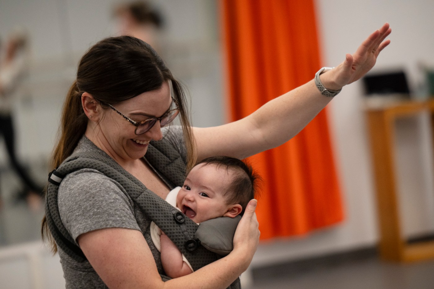 Babies that age are attached to and reliant on their caregivers. Artistic director Anat Shinar said Babywearing Dance class prompts caregivers and babies to engage in healthy, creative movement, providing them the space to pay attention to their emotions, breathing and relationships with one another.