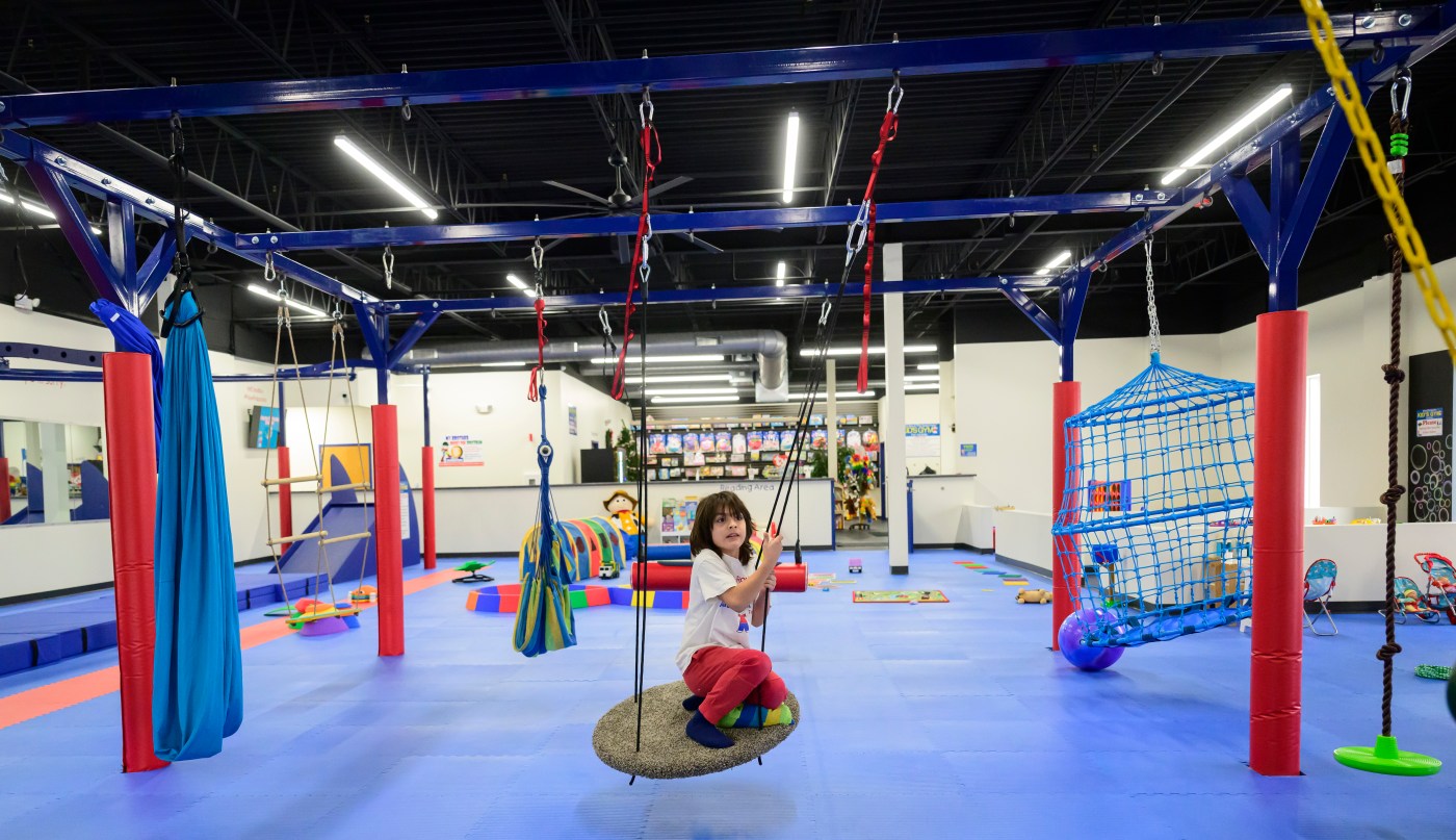 The indoor gym has 12 pieces of equipment specifically designed for children with sensory processing disorders. The equipment encourages skills like self-regulation, motor coordination, socialization and more. Sensory-specific equipment appeals to sensations that are especially comforting to neurodivergent people, like a safety blanket, Martinez said.