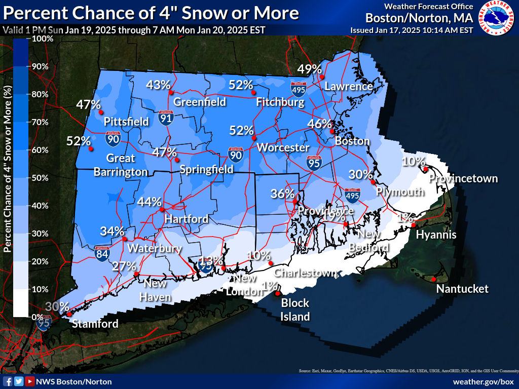 “The most likely scenario is 3 to 6 inches of snow for Sunday night, with the caveat that we still have a moderate amount of uncertainty for the higher-end amounts,” Bryce Williams, meteorologist at the National Weather Service’s Boston office, told the Herald on Friday.