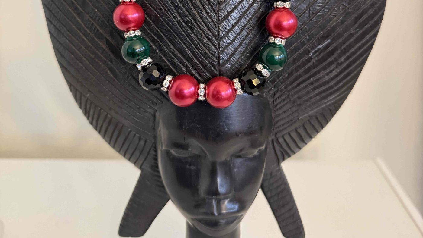 She recently launched two collections, the MLK Commemorative Jewelry set and the Black History Month set. Each collection features handmade, beaded necklaces and earrings created to honor Black history.