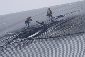Coalfield Development CEO Jacob Hannah and Assistant Crew Chief Ashley Cain stand inside the organization’s empty Black Diamond factory construction project in Huntington, W.Va. on Thursday, Feb. 6, 2025. (AP Photo/Leah Willingham)