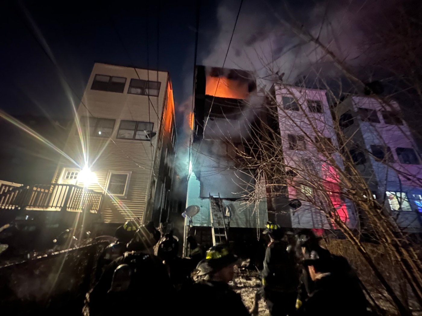 Firefighters were on the scene by 5 a.m. battling a blaze that showed fire on three levels of the building at 151 Saratoga Street.