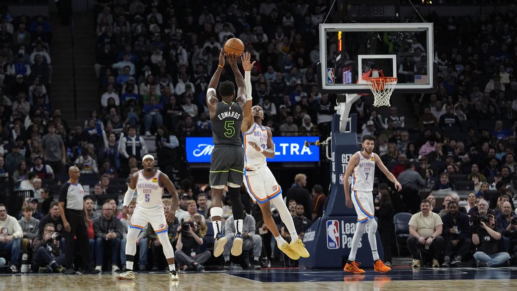 Minnesota came all the way back in the second frame to claim a five-point advantage late in the half to claim a five-point edge before Jalen Williams hit a triple at the buzzer to cut Oklahoma City’s deficit to two as both teams went into the locker room.