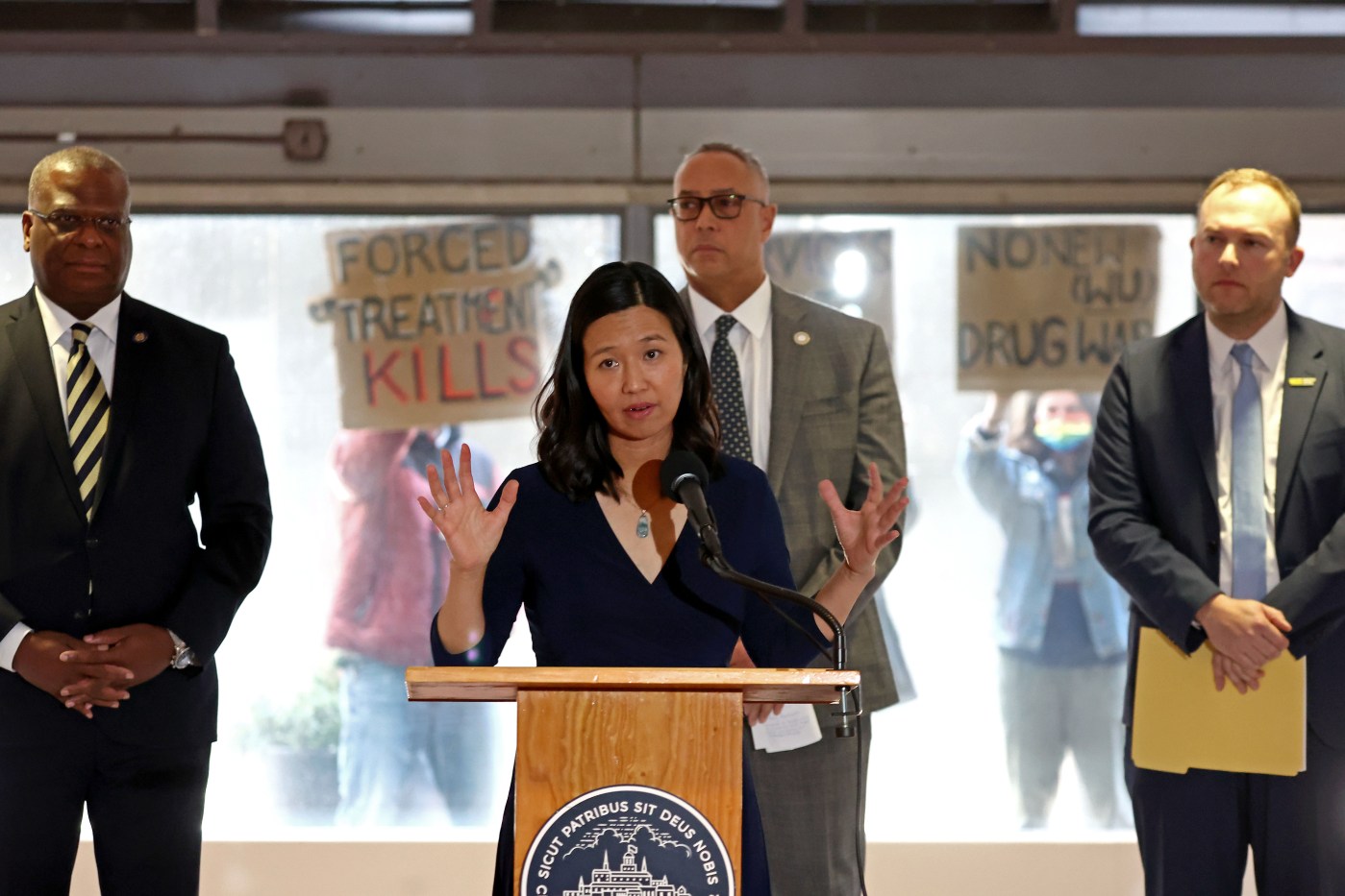 Mayor Wu, who also spoke at the day’s media briefing, outlined her administration’s intention to tackle congregate substance use as means of addressing those issues in a memo that she plans to file with the City Council next week.