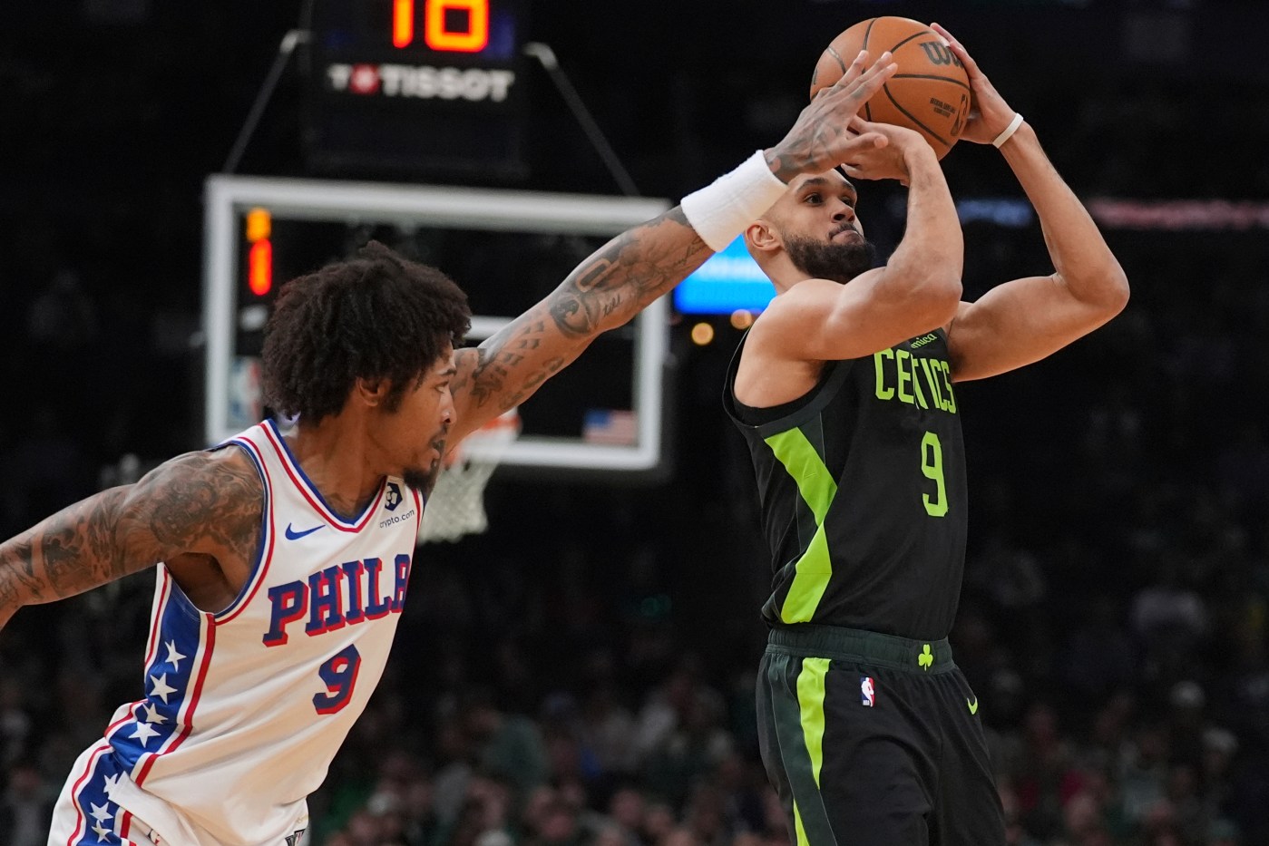 Boston was playing without Jaylen Brown, Jrue Holiday, Kristaps Porzingis, Al Horford and Sam Hauser, who all sat out due to injury or, in Porzingis’ case, illness. All five watched at least part of the game from the Celtics’ bench. Philly was missing its ill-fated Big Three of Joel Embiid, Tyrese Maxey and Paul George, plus an assortment of injured role players.