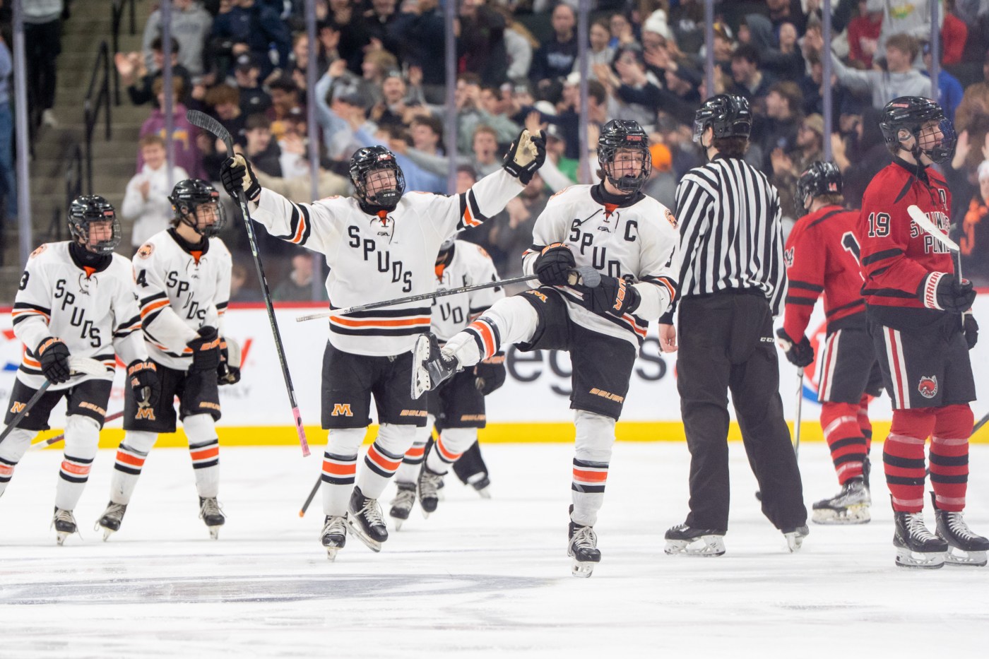 Charlie Stenehjem finished with 26 saves for the top-seeded Spuds (28-2-1), who also got goals from Brooks Cullen, Brandon Mickelson and Zac Zimmerman.
