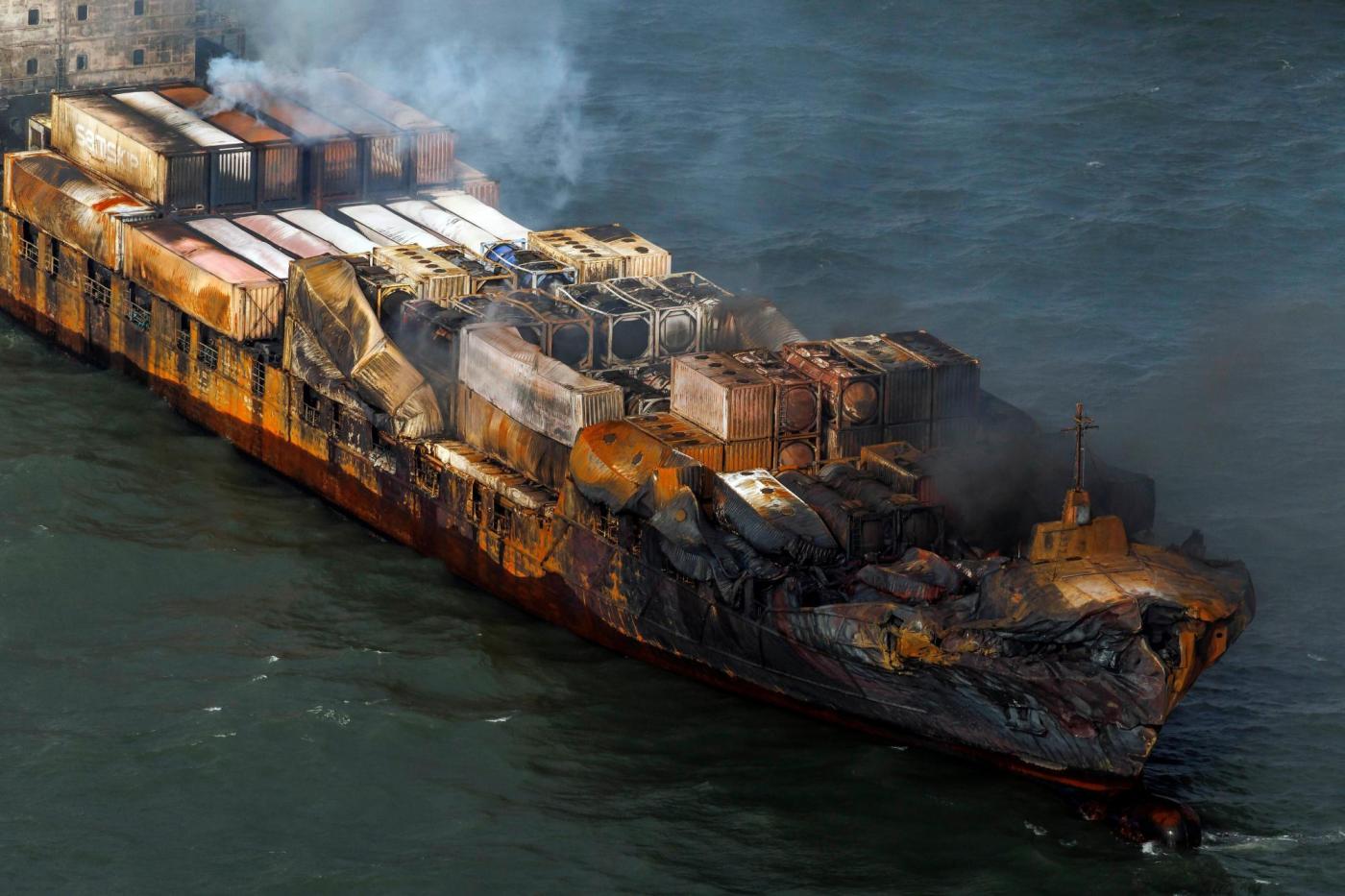 The Solong was drifting and still smoldering Wednesday, but is likely to remain afloat rather than sinking, officials said.