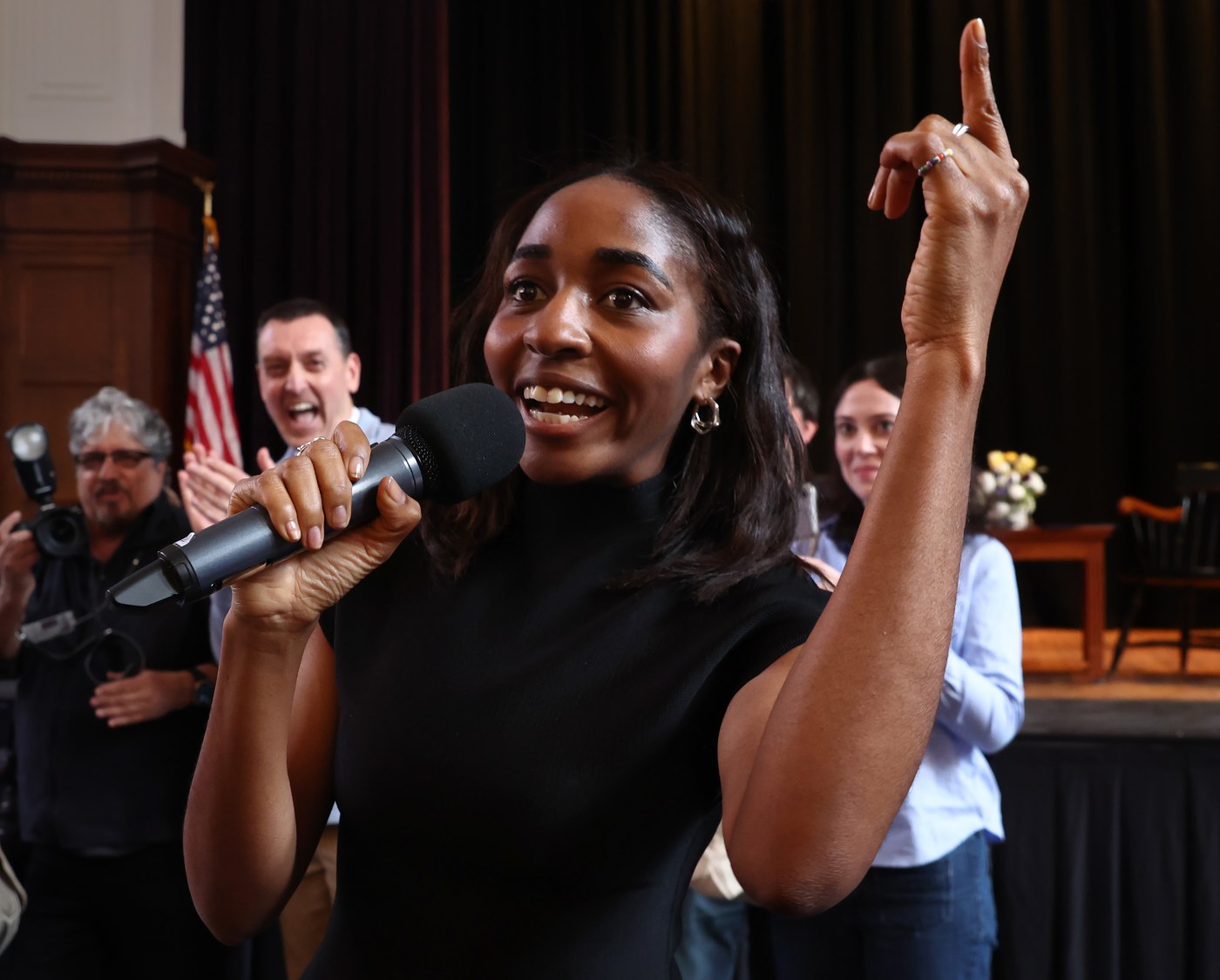 “It’s such a specific experience going to this school — the seniors are sort of nodding their heads,” she said, looking to the crowd. “And I feel like there’s a rigor that I have, and a level of care that I have, that would not be possible without having gone to this school.”
