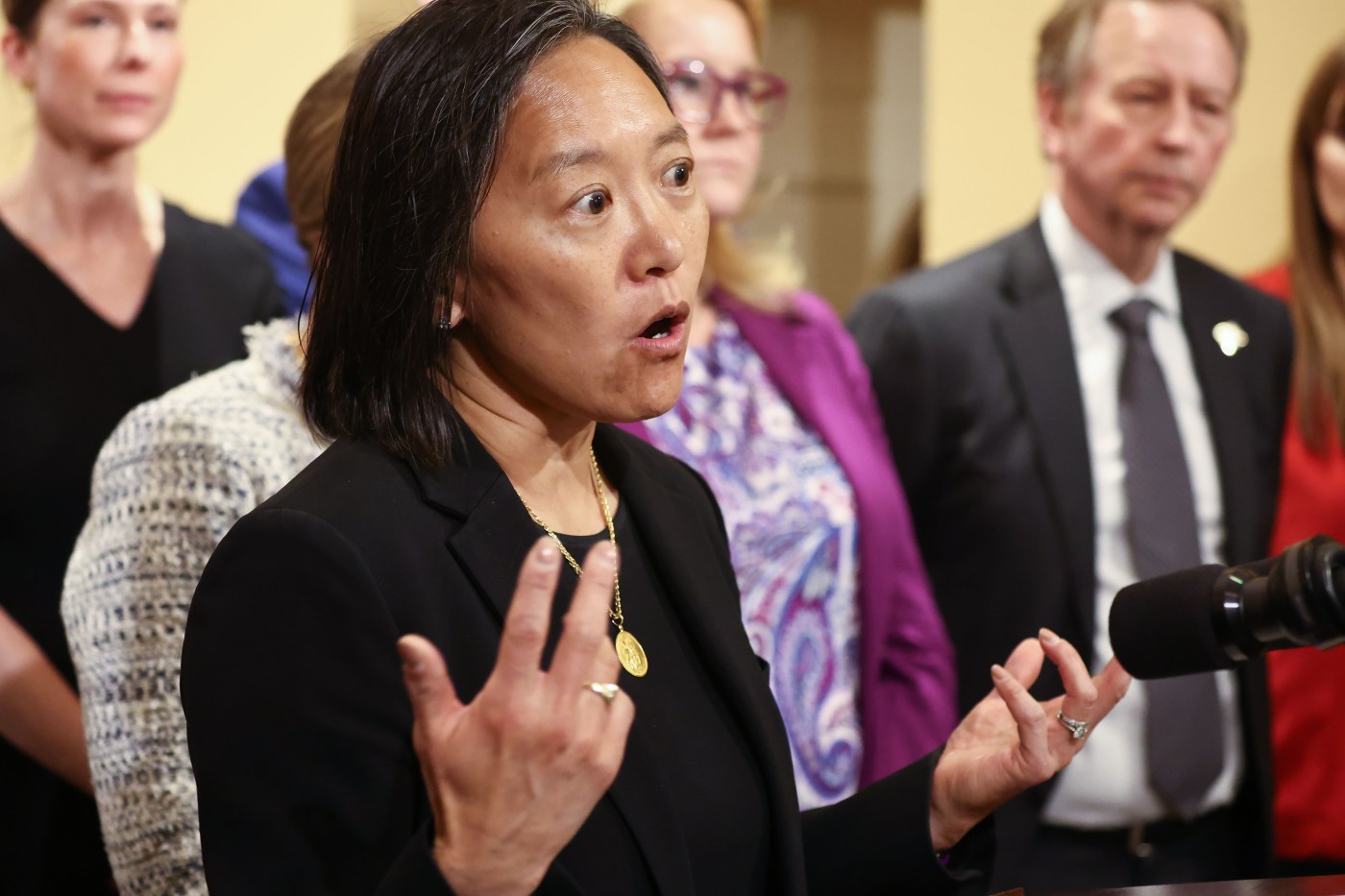 “It has been such a gift to serve as economic development secretary and to work every day to make Massachusetts more affordable, competitive, and equitable. Massachusetts is leading the world in curing disease, fighting climate change, applying AI for good, supporting our communities, and educating each other – and we’re doing it while making life better for our residents, and making sure every business, of every size and industry, can thrive,” Hao said, also thanking Healey for the opportunity.