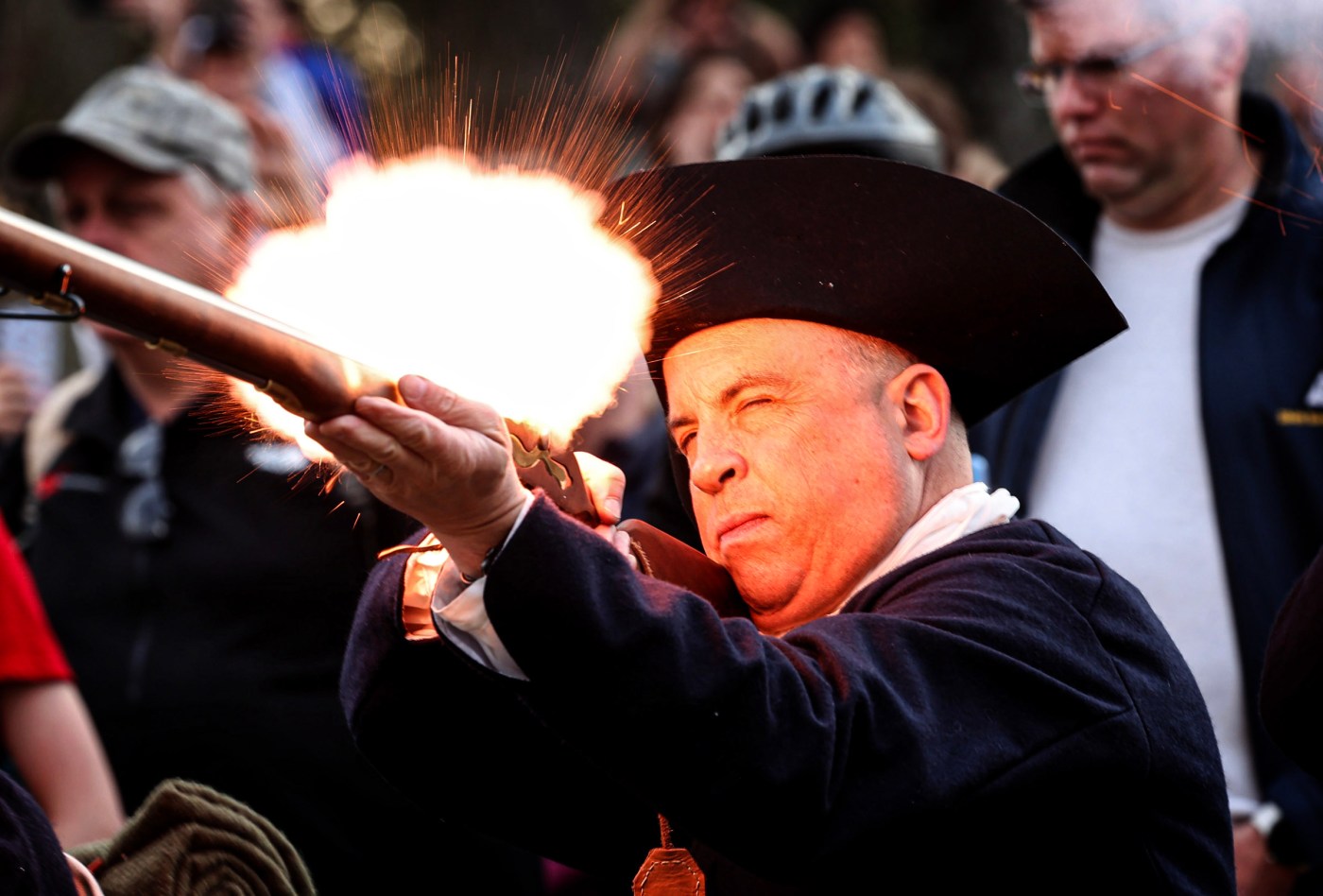“It’s truly momentous,” said Richard Howell, who portrayed Lexington Minute Man Samuel Tidd in the battle. “This is one of the most sacred pieces of ground in the country, if not the world, because of what it represents. To represent what went on that day, how a small town of Lexington was a vortex of so much.”