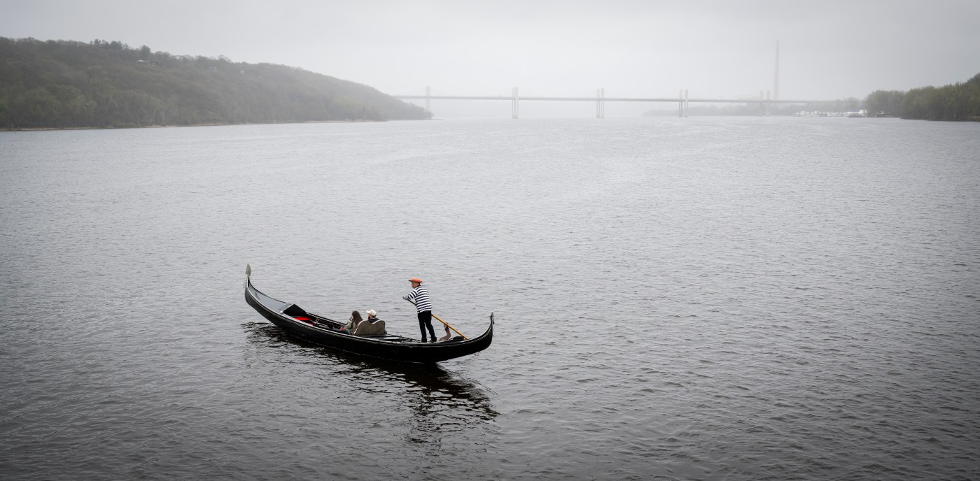 He once took a couple out during a “pretty steady rainfall” and headed just north of the Stillwater Lift Bridge. As he steered the gondola from the Wisconsin side of the river to the Minnesota side, the rain suddenly stopped, he said.