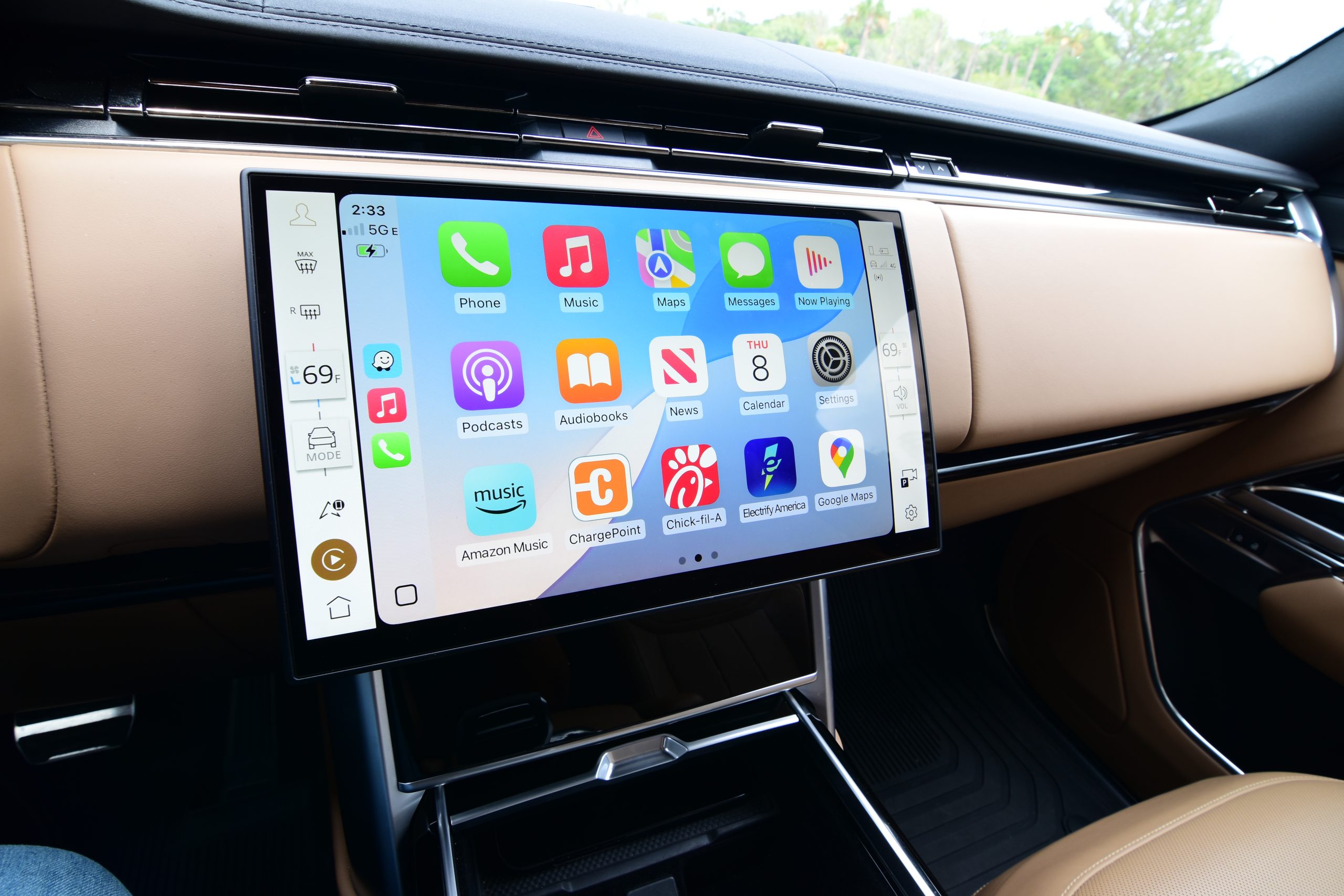 The interior of the new Range Rover is always inviting and chock-full of leather appointments. The dashboard of the Range Rover, mimicking the theme of many other new Land Rover vehicles, has a minimalistic play where nearly all vehicle controls and entertainment functions are accessed through the latest Pivi Pro infotainment system fed through a 13.1-inch touchscreen.