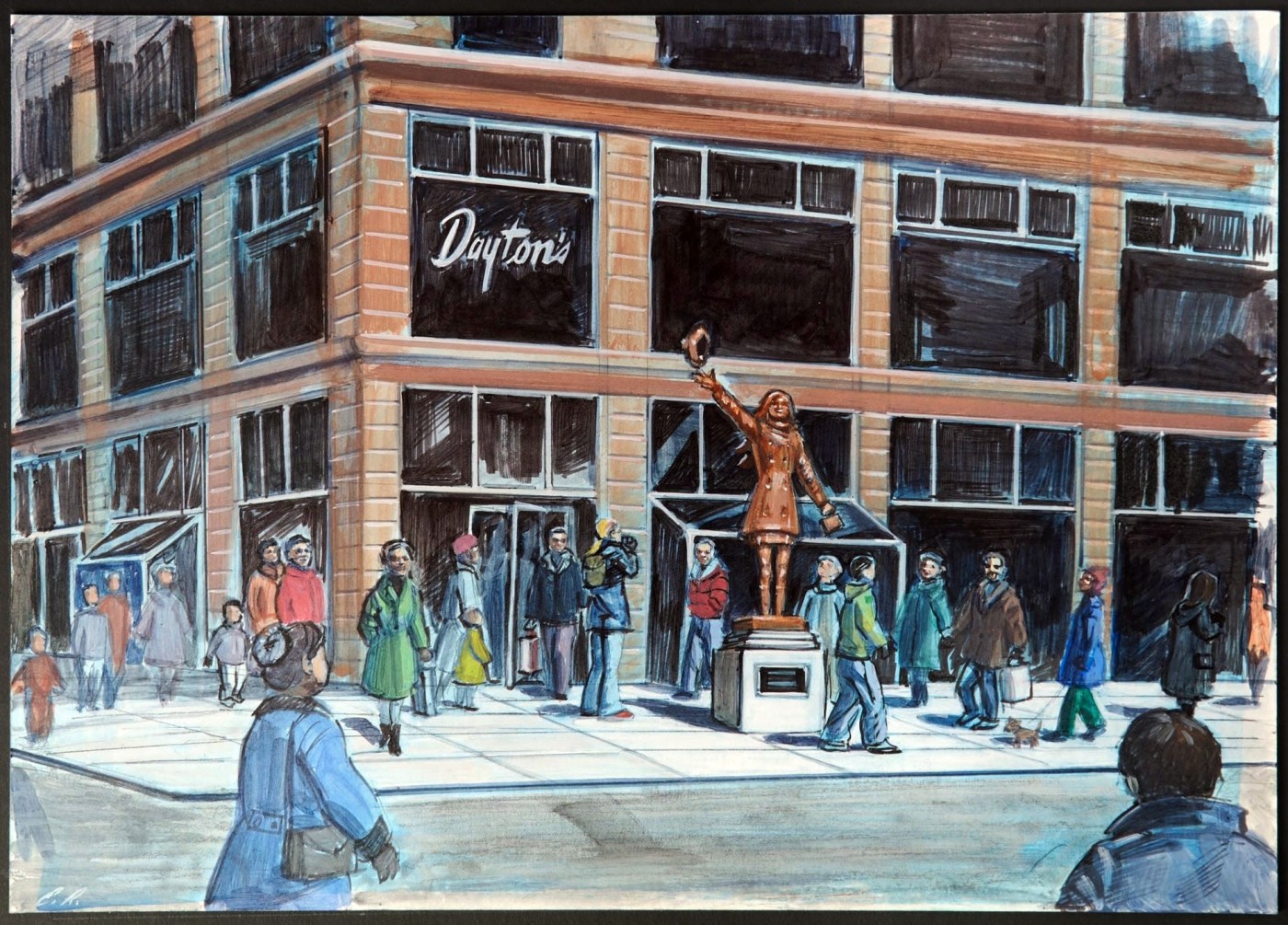 Many years later, in 2002, Moore was back in Minnesota for the unveiling of the bronze statue by Wisconsin sculptor Gwendolyn Gillen depicting the actor’s legendary tam toss at Seventh Street and Nicollet Mall in downtown Minneapolis.