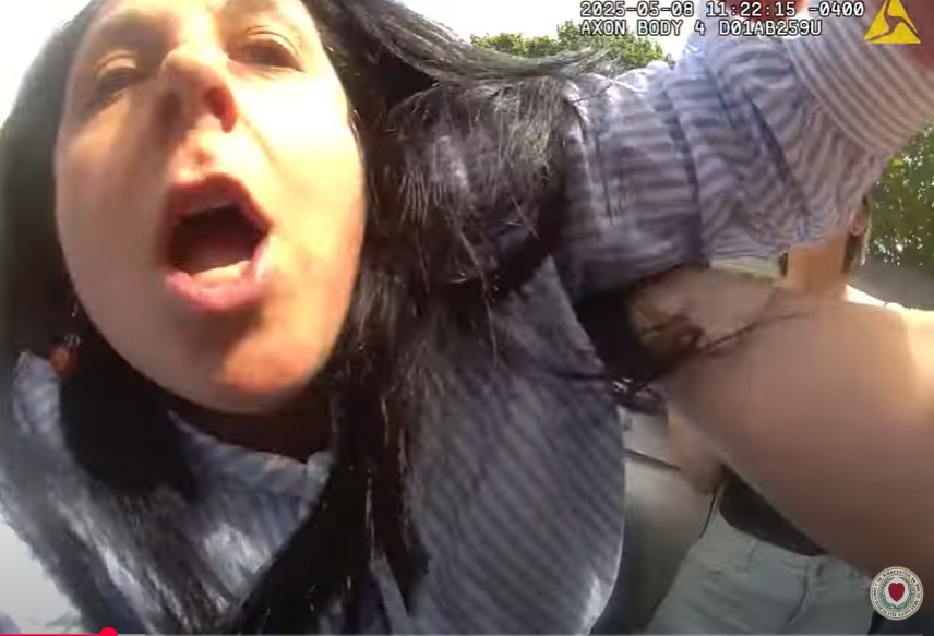 Worcester Police body camera footage shows City Councilor Etel Haxhiaj (left) confronting officers. (Herald screengrab)