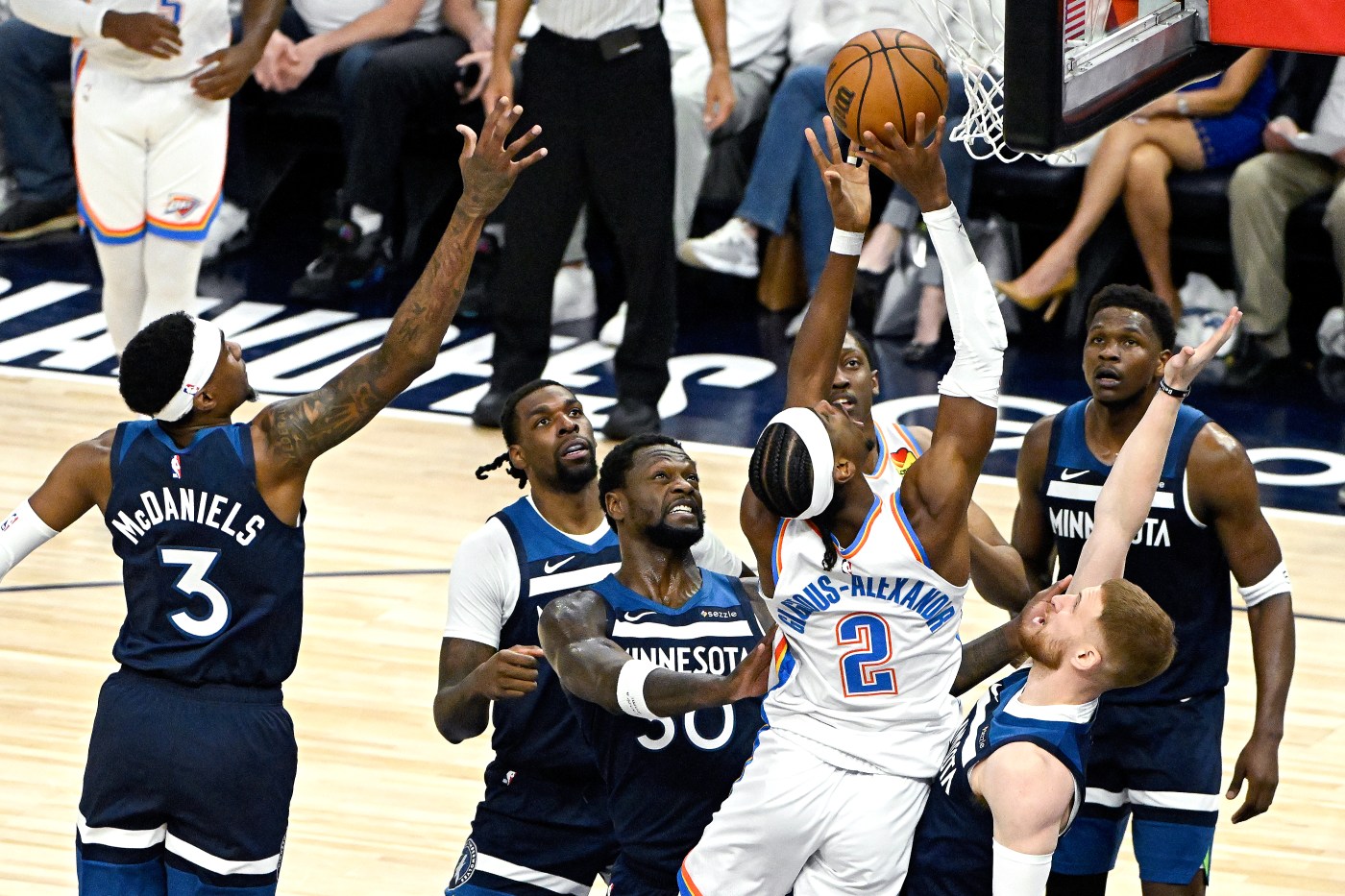 Gilgeous-Alexander went 12 for 14 from the free-throw line, making a pair with 6.1 seconds left to stretch the lead back to three. The Thunder fouled Anthony Edwards with 3.5 seconds to go, and his intentional miss of the second one to try to keep possession was tracked down in the corner by Gilgeous-Alexander and flung out of bounds in attempt to drain the clock.