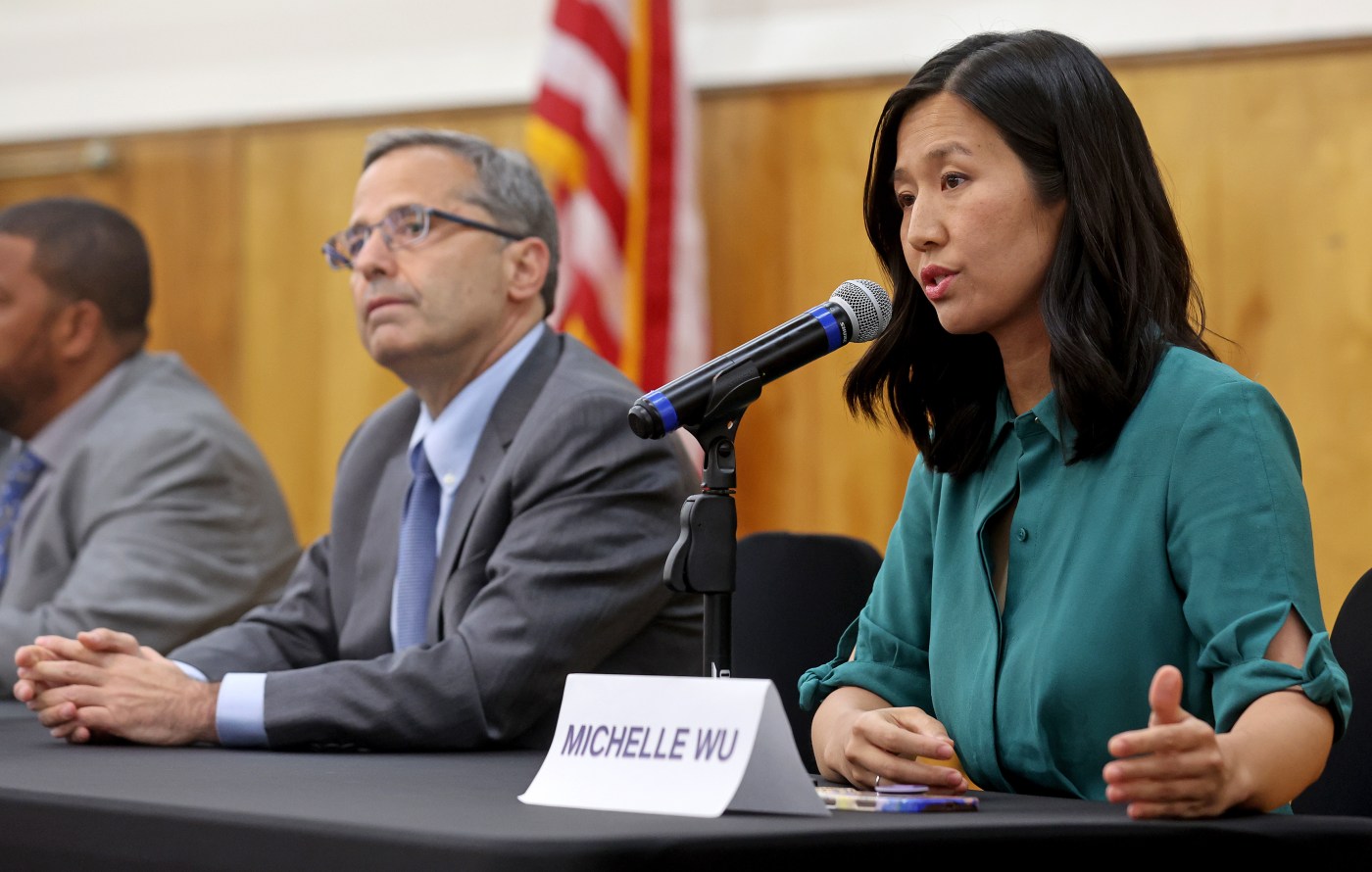 Wu also took some heat from the crowd over her resistance to moving to an elected school committee, which drew roughly 80% support from Boston voters in a non-binding 2021 ballot question.