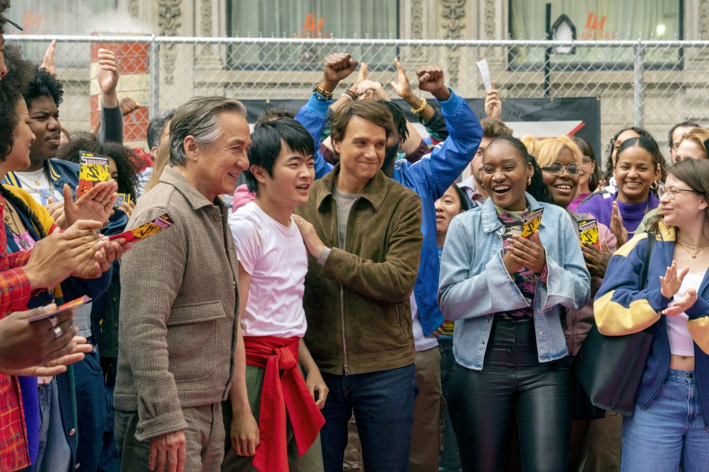 Ben Wang, left, Jackie Chan and Ralph Macchio star in “Karate Kid: Legends.” (Courtesy of Sony Pictures)