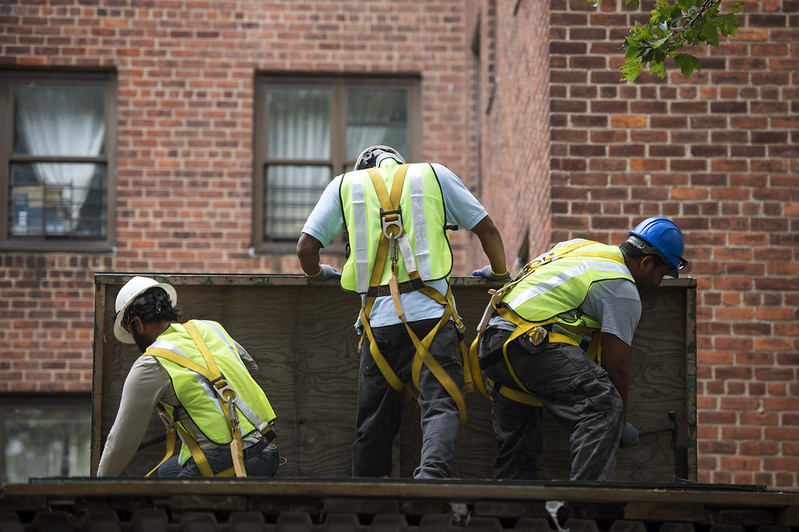 Trabajadores de la construcción en una urbanización de NYCHA en 2015.