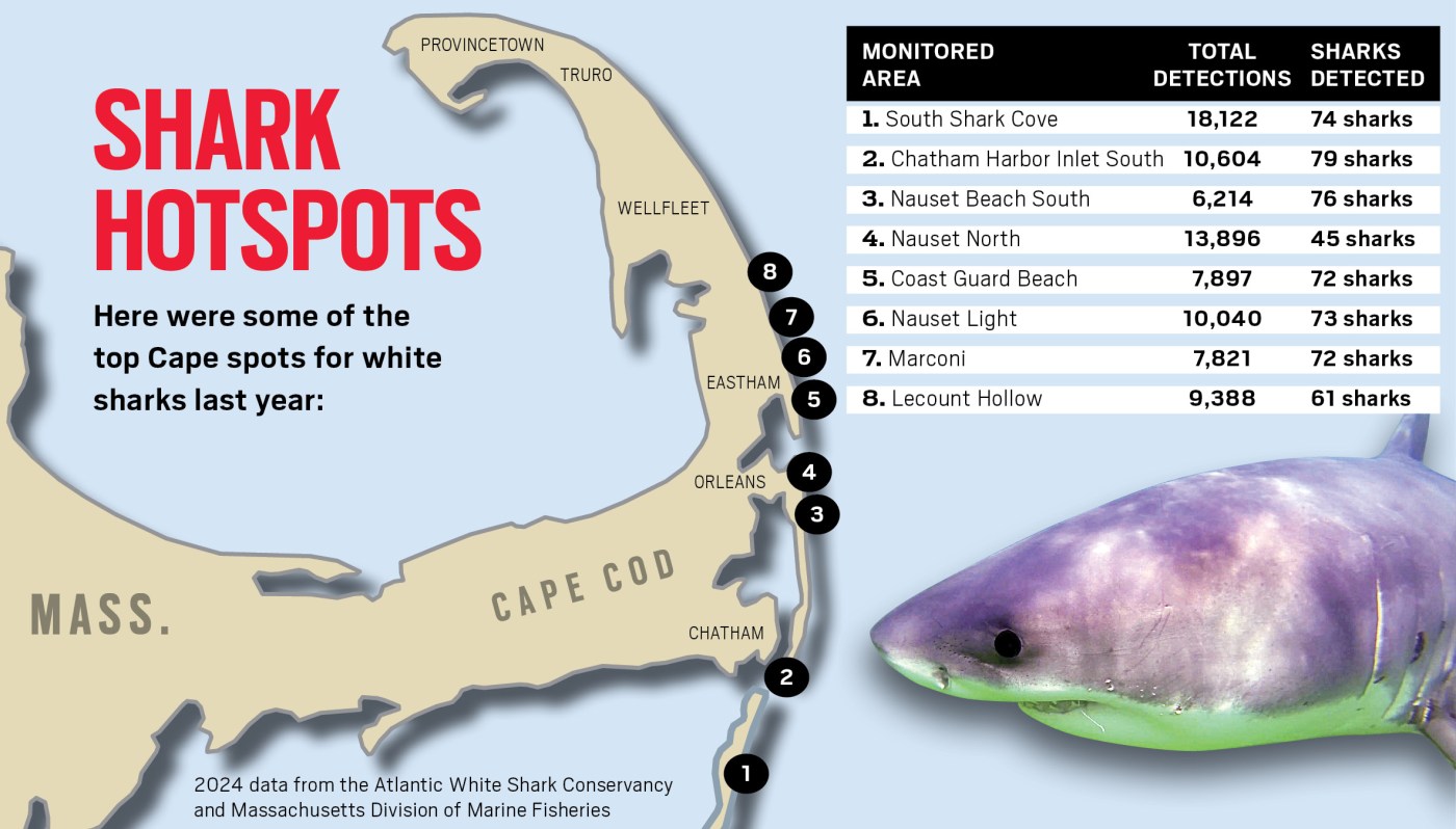 Cape Cod shark detections: Where are the top hotspots for white sharks?