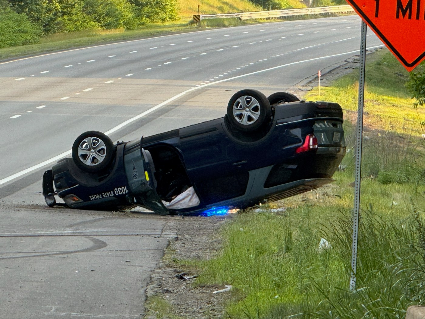 Massachusetts State Police trooper crashes and flips cruiser on I-495