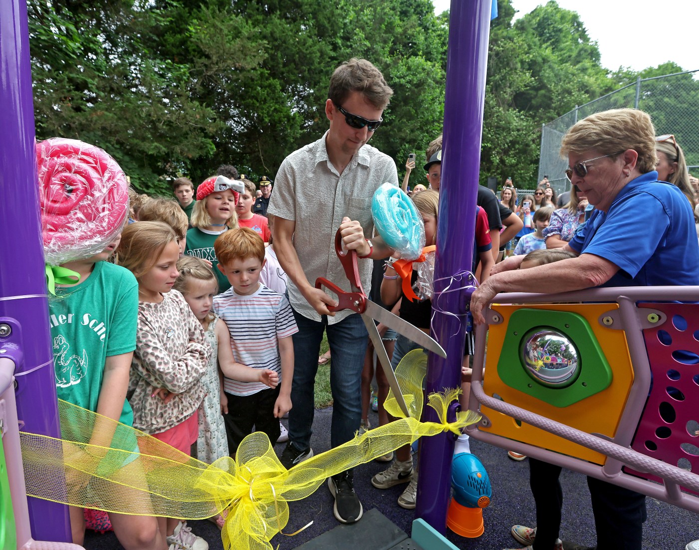 The children’s father Patrick Clancy got to do the ribbon-cutting honors. He had moved away from Duxbury following the Jan. 24, 2023 tragedy that shattered his world.