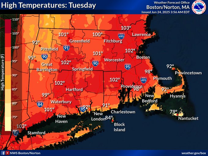 Boston hits 100 degrees at Logan, tying heat record for June: ‘Extreme Heat Warning’