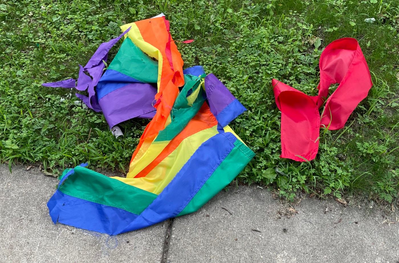 A St. Paul resident, Kelly Sofio, woke up this week and noticed her flagpole was on the ground and her pride flag was missing. Her husband found the flag vandalized on the ground down the street.
