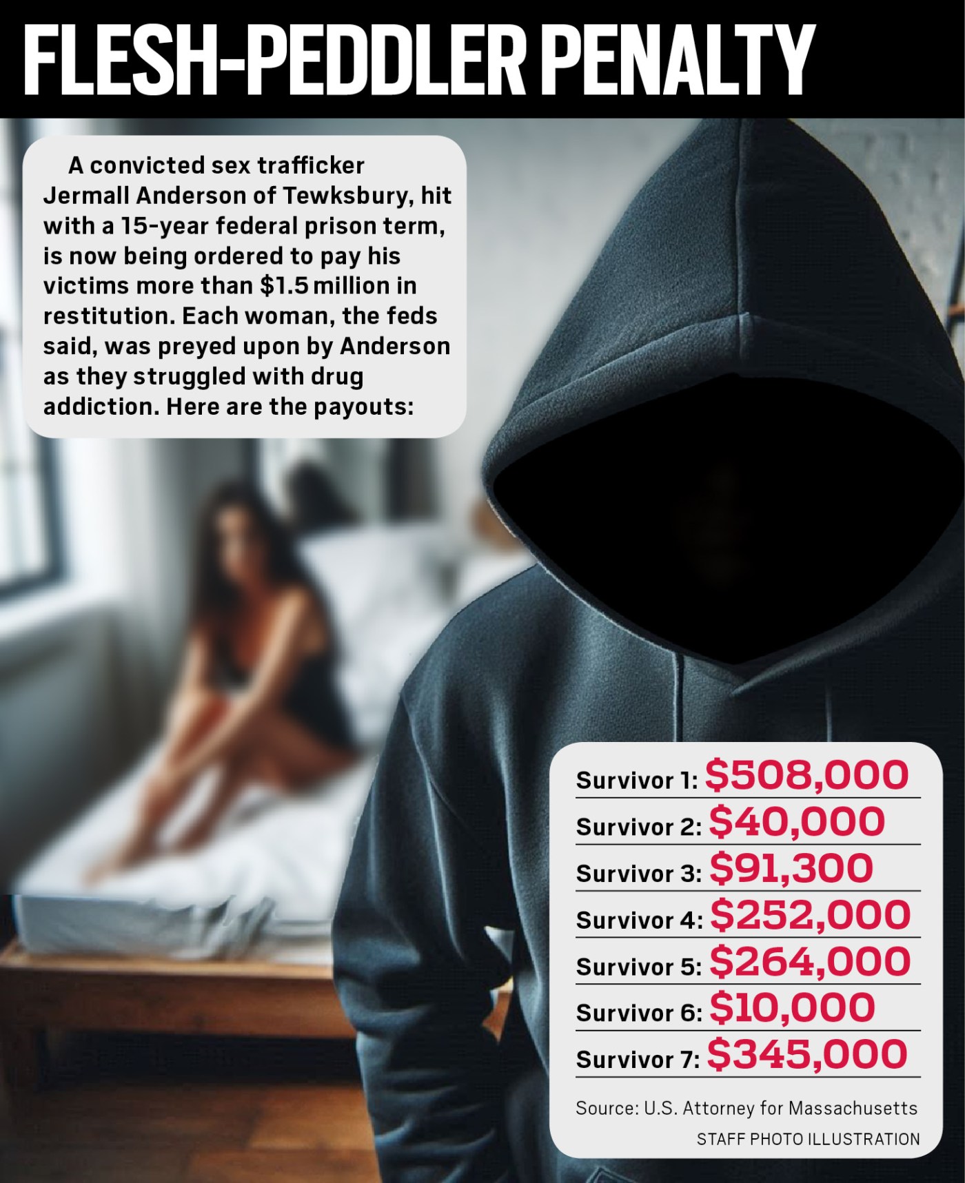 Boston-based federal Judge Denise Casper ordered restitution in the amount of $1,510,300 to be paid to the survivors “victimized by Anderson who sex trafficked seven women over the span of four years,” Massachusetts U.S. Attorney Leah B. Foley and Michael Krol, Special Agent in Charge of Homeland Security Investigations in New England, announced Friday.
