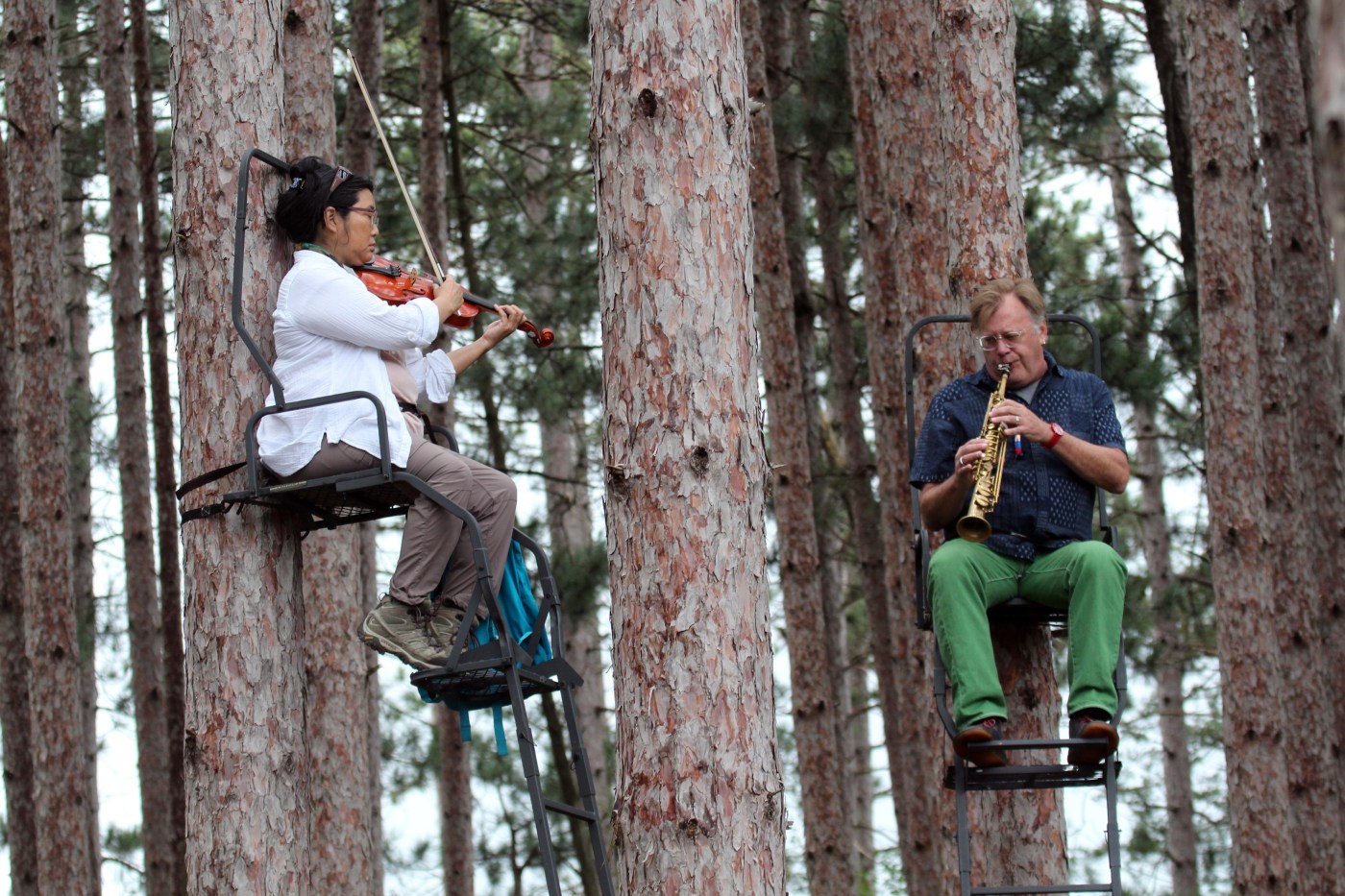 The annual event, which began in 2019, features various musicians performing 16 feet above the ground on platforms in the pine trees.