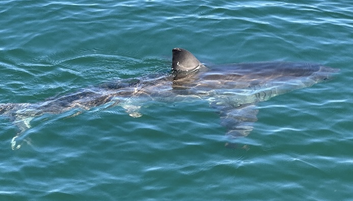 During a recent trip, the whale watch had spotted two white sharks. The shark that they saw on Sunday did not appear to be from that pair.