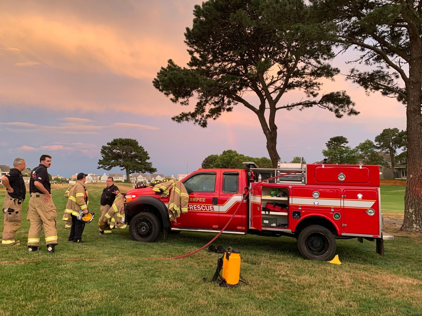 “Two people and one dog were transported for medical care,” the Massachusetts Department of Fire Services said in a statement on Thursday, “and we are deeply relieved that they are all recovering thanks to Mashpee firefighters’ immediate on-scene response.”