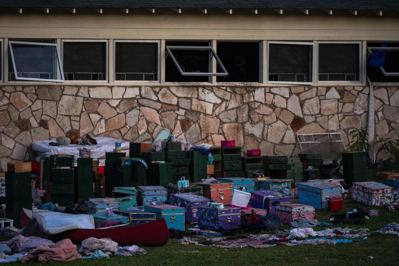 Campers belongings sit outside one of Camp Mystic’s cabins near the Guadalupe River, Monday, July 7, 2025, in Hunt, Texas, after a flash flood swept through the area. (AP Photo/Eli Hartman)
