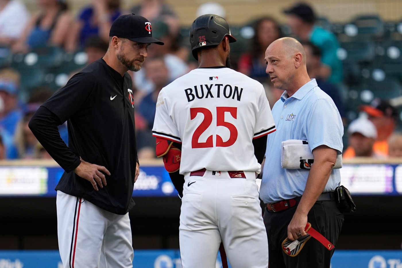 As the man leading off for the Twins on Wednesday night at Target Field, Buxton was hit by a pitch from Chicago Cubs pitcher Cade Horton. Though he initially stayed in the game, stole second base, and scored a run, Buxton replaced by infielder Brooks Lee his next time at the plate.