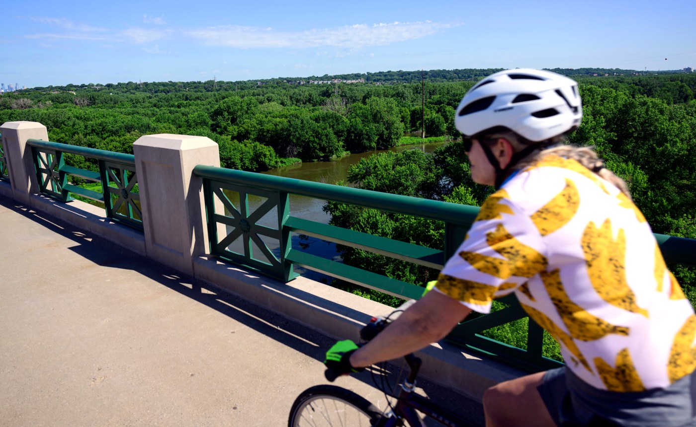 St. Paul resident Jeremy Norton biked across the renovated Mendota Bridge for the first time Wednesday. He said he didn’t think the railing was too low, and that the concerns might be an issue of “perception of safety versus actual safety.”