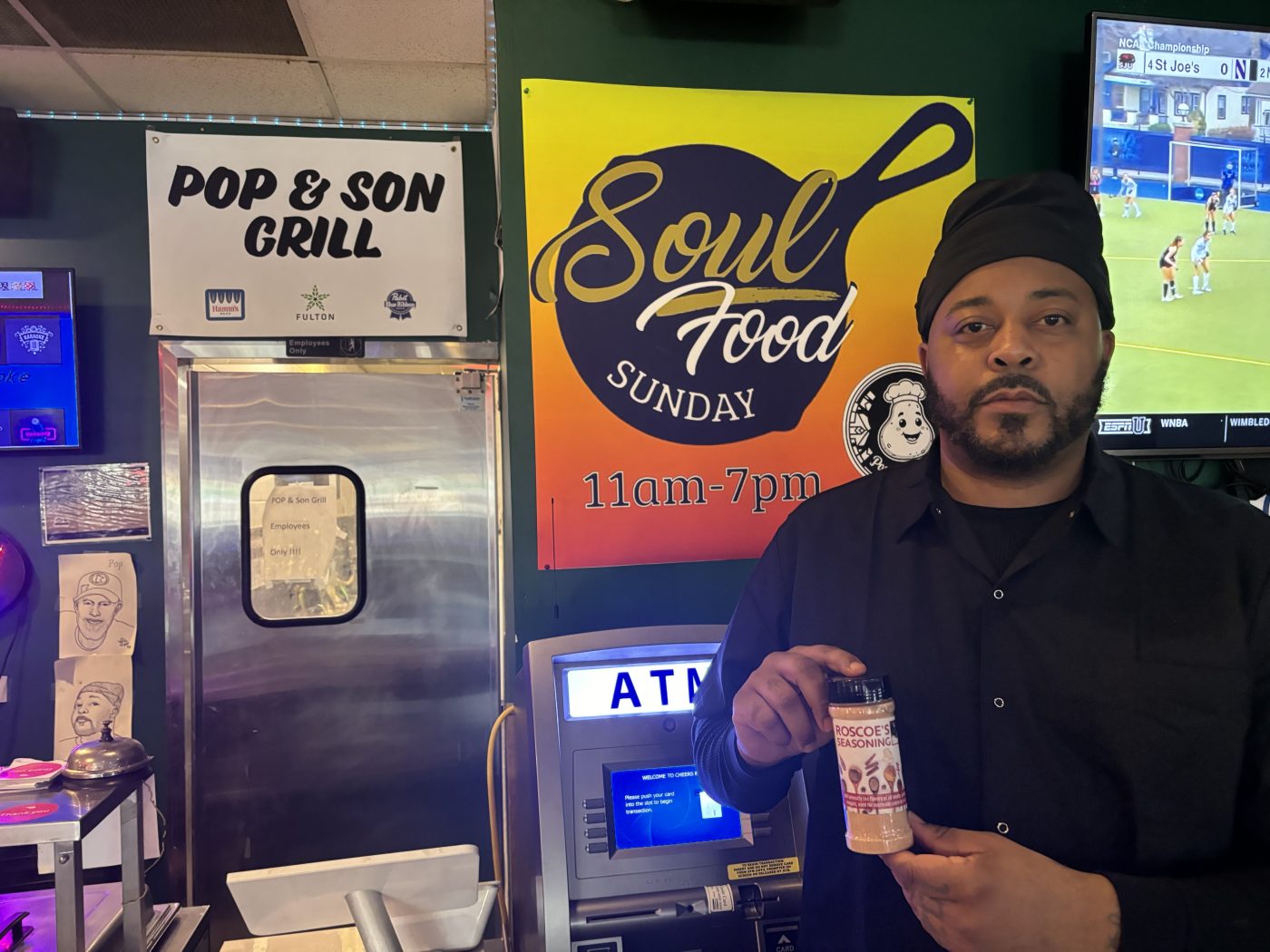 The restaurant’s hours differ from the bar: Pop and Son Grill is open 3 p.m. to midnight Tuesdays through Saturdays and 11 a.m. to 7 p.m. Sunday with a special “Soul Food Sunday” menu.