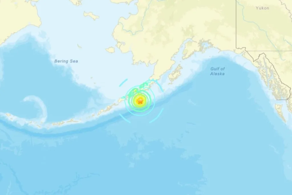 A U.S. Geological Survey (USGS) map shows that the quake struck in the Gulf of Alaska just miles south of a sparsely populated section of the Alaska Peninsula, roughly 54 miles south of the city of Sand Point, Alaska.