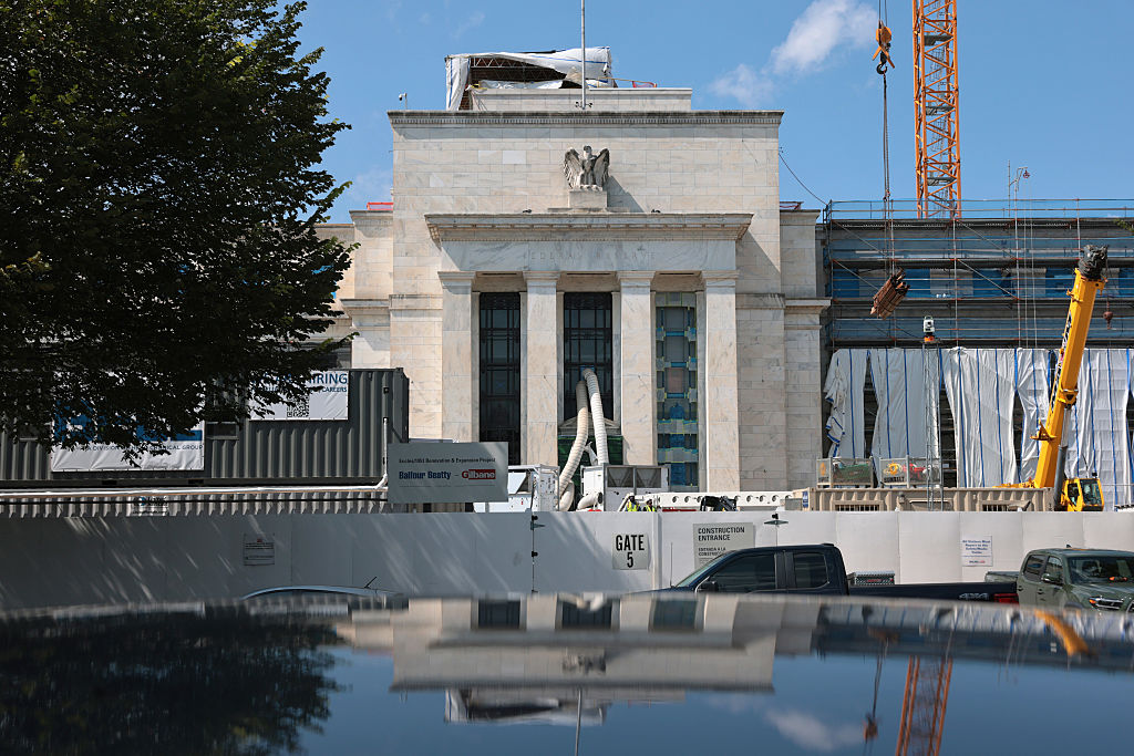 WASHINGTON, DC – JULY 17: The Federal Reserve building is seen as it goes under construction on July 17, 2025 in Washington, DC. U.S. President Donald Trump, who has been pressuring Federal Reserve chairman Jerome Powell to cut interest rates, says that he is “highly unlikely” to fire him. Office of Management and Budget director Russell Vought has asked the Powell to respond to a series of questions about cost overruns in the nearly $2.5 billion renovation by July 21st. (Photo by Michael M. Santiago/Getty Images)