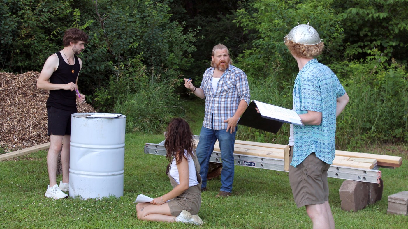 Local actor Reed Sigmund works on a production of “Robin Hood” at Aamodt’s Apple Farm in Stillwater. The production runs from July 25 through Aug. 3, 2025 at the farm. (Courtesy of Emily Staloch)