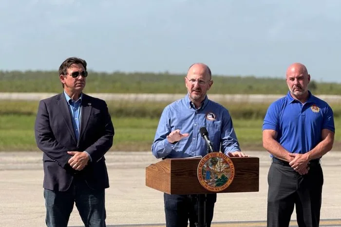 DeSantis, Guthrie, and Blaise Ingolglia, Florida’s new chief financial officer, addressed several reports about cost, environmental impact, and hurricane preparedness.
