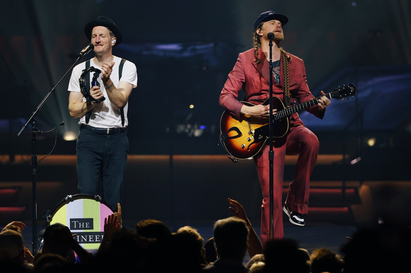 Backed by a quartet of crackerjack touring members, the duo opened the show on a high-tech stage filled with flashing, oversize television sets and the glitz kind of felt off brand for the guys. From there, though, the musicians hopped between that stage and the stripped-down catwalk that extended into the crowd. Schultz even spent “Brightside” walking through the crowd on the arena floor and up into the 100 level.