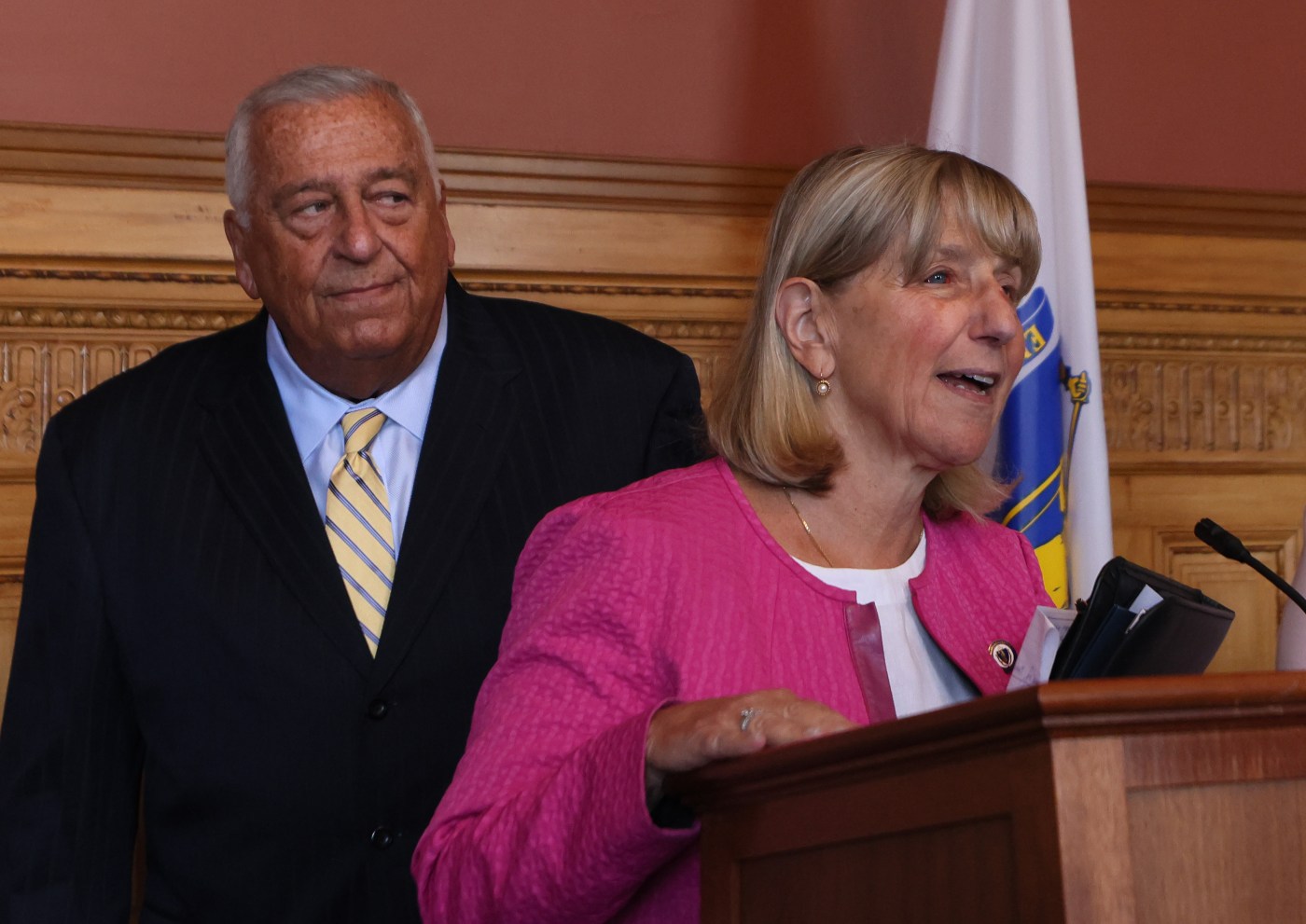 In a statement last month, Senate President Karen Spilka said the “SHIELD Act” makes it clear that Democrats in Massachusetts “will not back down when it comes to protecting our residents and defending our values.”